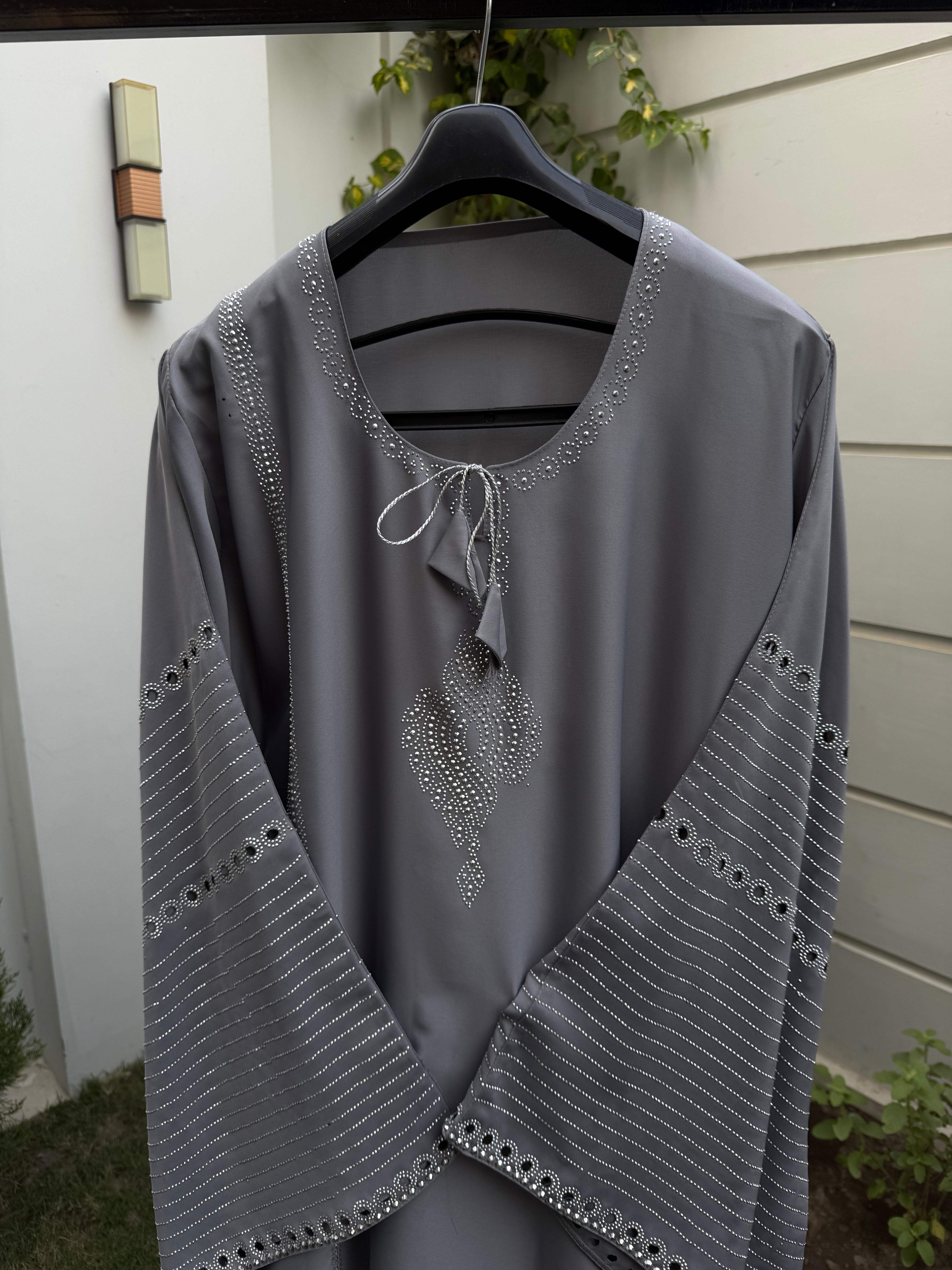 The Silver Mist Abaya is the epitome of modern modesty. The soft, neutral gray tone provides a refreshing break from traditional dark colors while remaining incredibly easy to style. Crafted from genuine Nida fabric, this abaya is cool to the touch and resistant to creasing, making it ideal for the woman on the go. With a standard 52-inch length, it offers a graceful flow that moves with you. Whether paired with bold accessories or kept simple, this abaya is a testament to the beauty of "less is more."